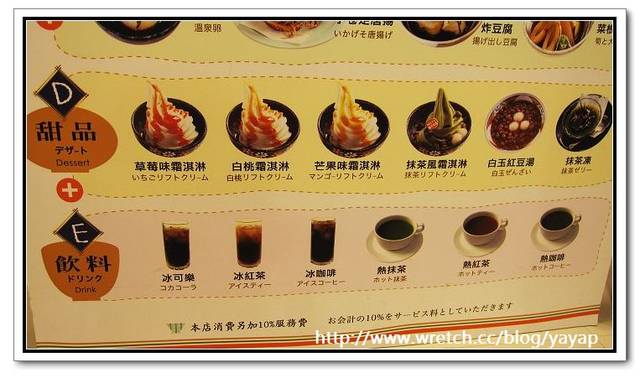 D.甜品:草莓味霜淇淋、白桃霜淇淋、芒果味霜淇淋、抹茶風霜淇淋、白玉紅豆湯、抹茶凍