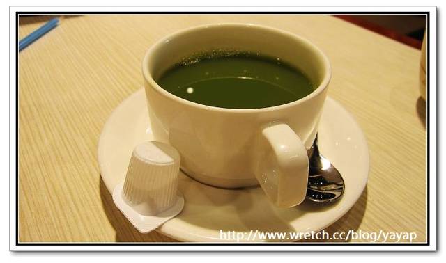 點完餐之後,飲料就先上來囉!這是熱抹茶!推薦指數★★★