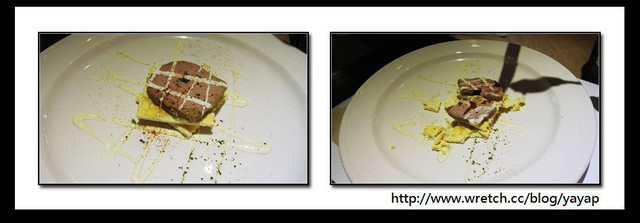 惠謙嘗試著想要把它切開,就是右邊的下場囉!味道也是普通,不過有鵝肝醬的光環呀~~~