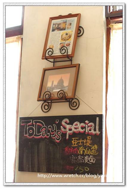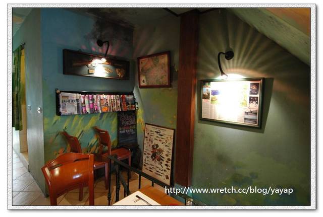 牆上掛滿裝飾品,不管是時鐘、畫、明信片......都是很歐式的!