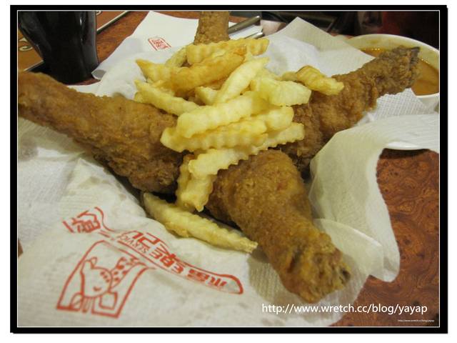 有四隻炸雞腿跟一些薯條~薯條就不用多說啦!跟漢堡旁邊的薯條是一樣的!