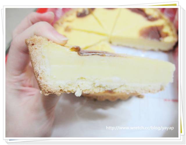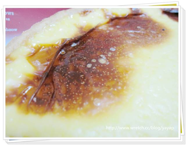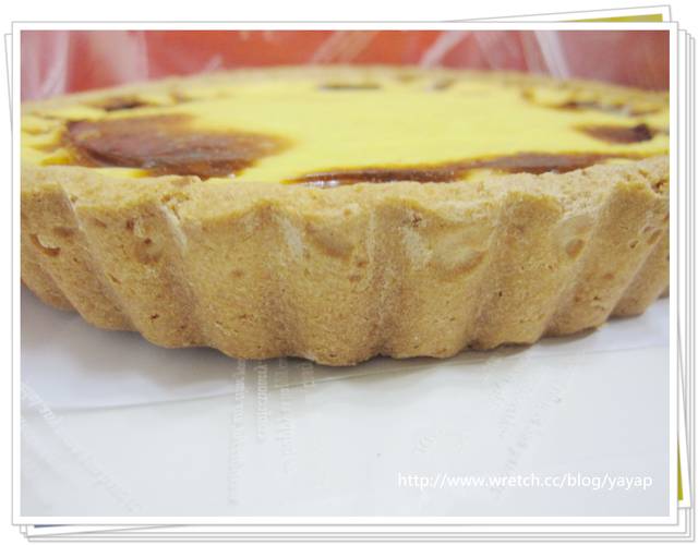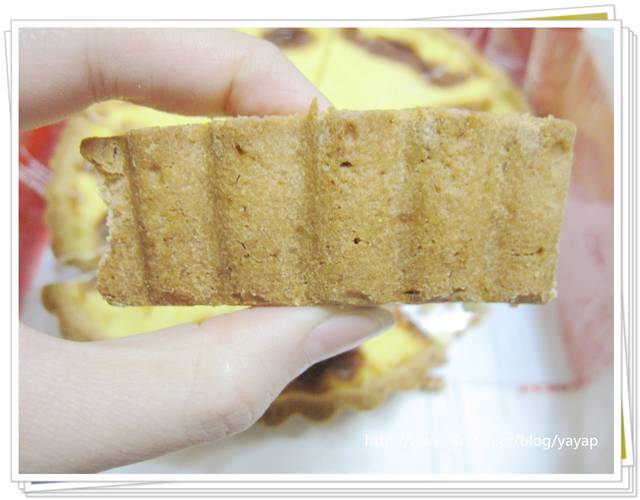 近拍看看表面,就是很像蛋塔的這個東西,嫩嫩的香香的喔!
