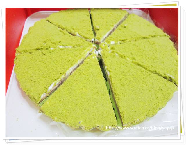 然後有薄薄的一層奶油,最後撒上抹茶粉。