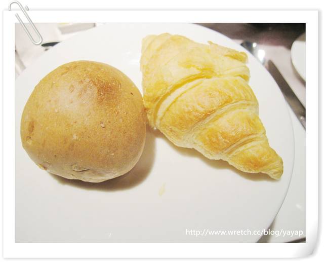 提供的麵包有兩種,是雜糧麵包跟牛油可頌!