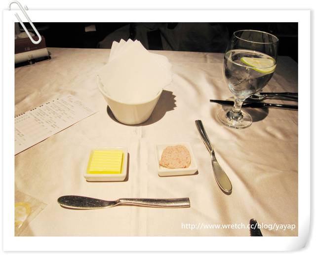 麵包有兩種抹醬,就是奶油跟鴨肝醬囉!
