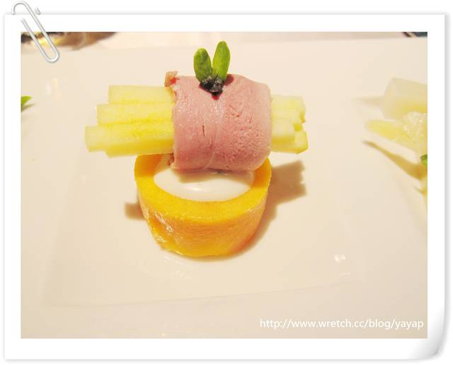 而這個鴨胸包著蘋果,除了讓口感參雜著些脆度之外,