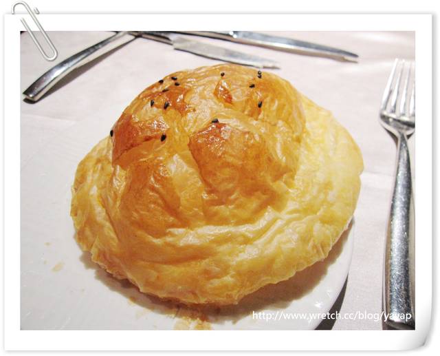 用意應該是要讓我們先喝喝純湯,再把酥皮放進去吧!
