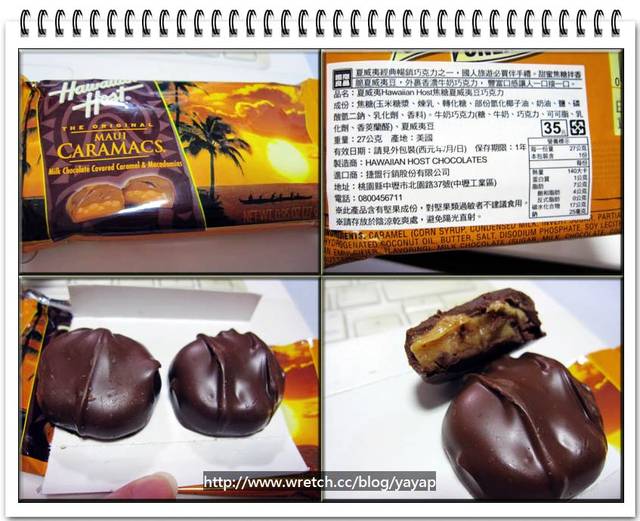 外層是牛奶巧克力,裡面是香濃的焦糖跟夏威夷豆,