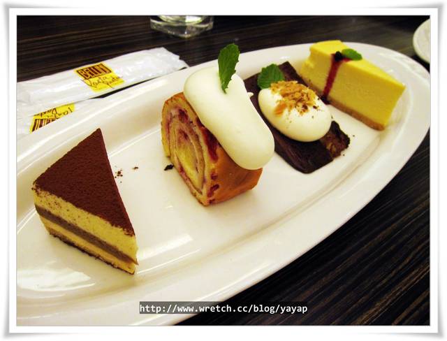 簡單來說,就是堤拉米酥、瑞士卷、起司蛋糕、巧克力蛋糕這四種。