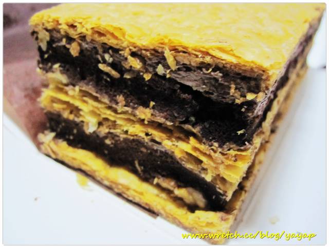 江江看起來很像千層派的fu,中間夾著一層一層的巧克力,