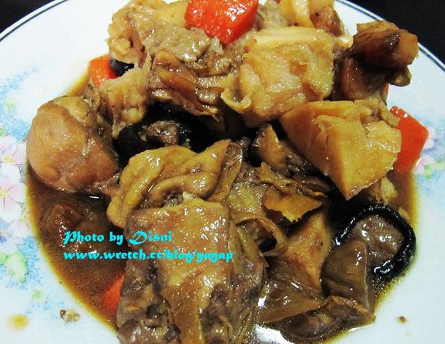 裡面除了栗子和雞肉,還有香菇、馬鈴薯、紅蘿蔔,那馬鈴薯格外好吃,我要給它一個棒棒~