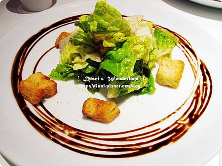 沙拉吃起來就是普通的沙拉,但我覺得要沾著外圈的醬料,不然沒什麼味道。