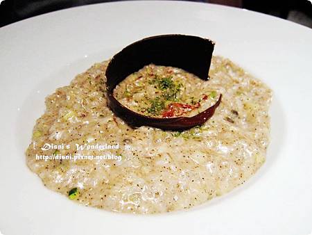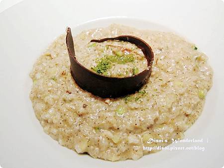 這是義大利燉飯,上面有巧克力皇冠和松露,