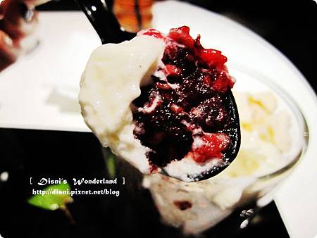 下面的紅果醬不會太甜,可以吃到果粒,很有質感。