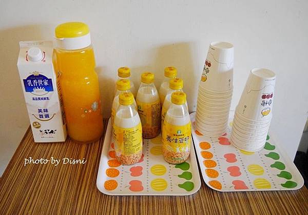 飲料有牛奶、果汁及豆奶。