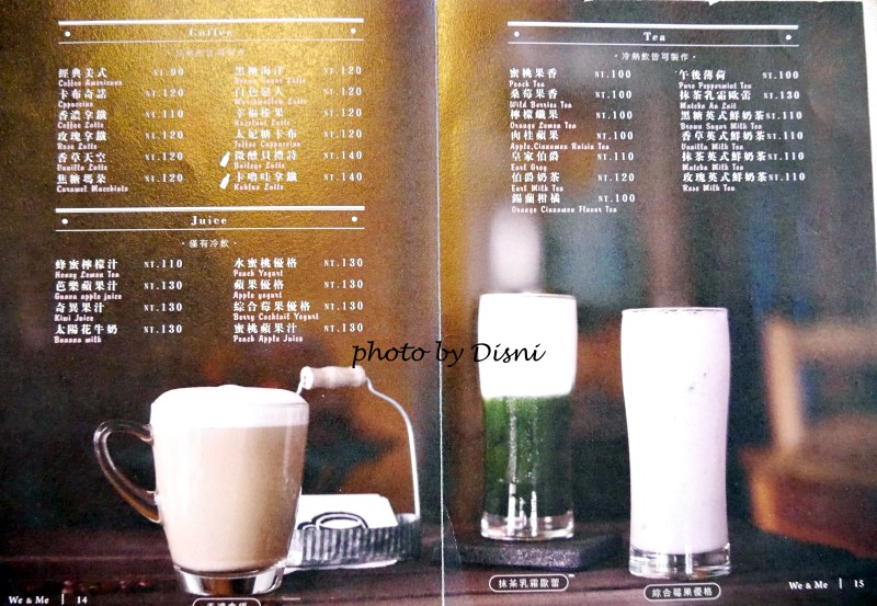 [ We & Me Cafe ] 的飲品主要分為咖啡、果汁及茶類,