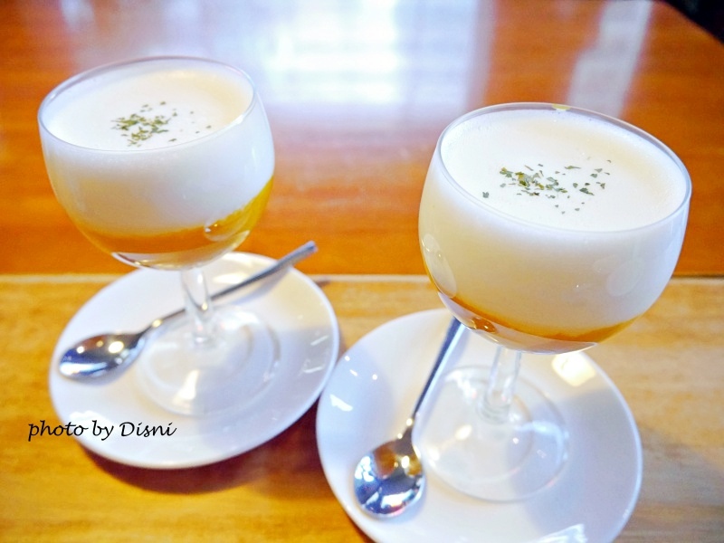 使用高腳杯盛裝的南瓜濃湯,讓我們好驚訝~