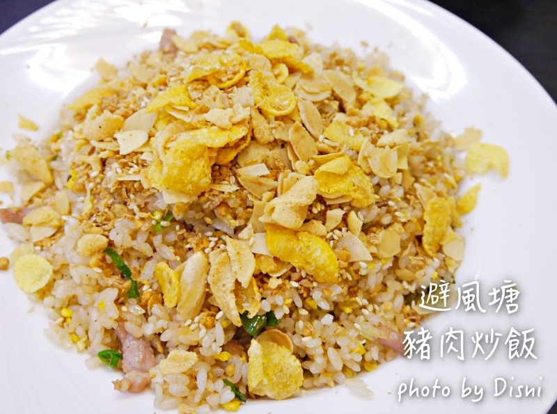 而這道避風糖豬肉炒飯的重點在於上面灑上了許多增添口感的元素,