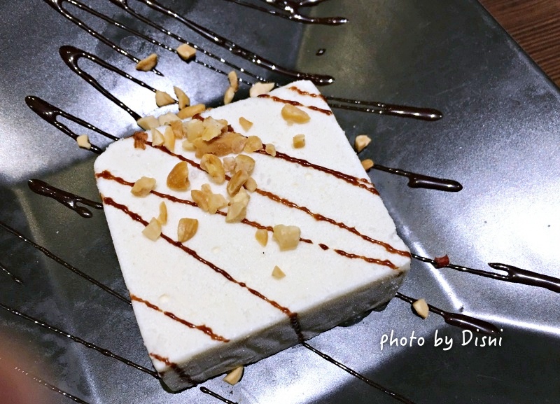 因為這個真的挺有名的~ 方方正正的就像一塊豆腐一般, 上面灑了花生碎跟巧克力醬。