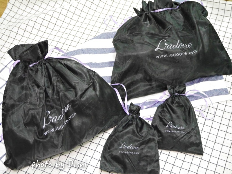 而我這次收到產品,不同類型的各自用束口袋裝好,