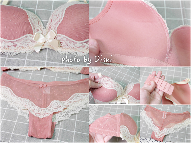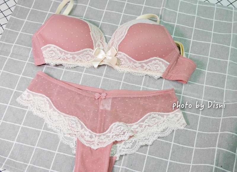 漂亮細緻的蕾絲我也很喜歡,內衣中間蝴蝶結及水鑽好美好美唷:)