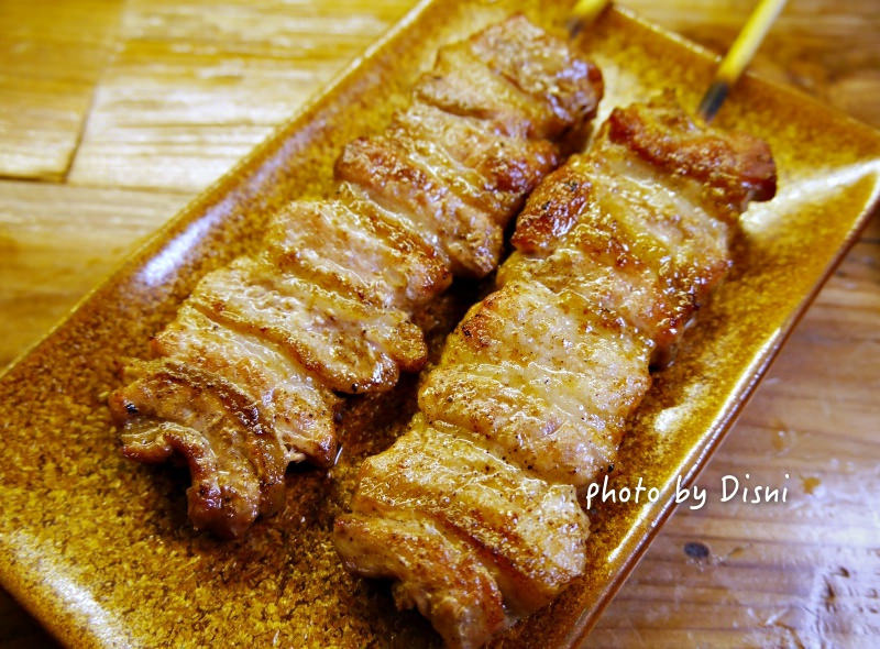 店家把這豬五花的油花部分烤到金黃焦脆,