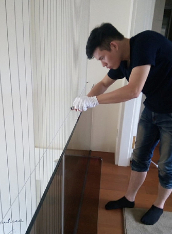 量好尺寸之後,超級有效率,馬上就約了時間,因為是工廠直營,花的時間不用很久,隱形鐵窗的製作就是將鋼絲上下纏繞著,所以兩邊都有很多螺絲去固定,從遠方看會有一條一條的線,像絲襪一樣透,但是又不影響美觀,同時兼具安全性。