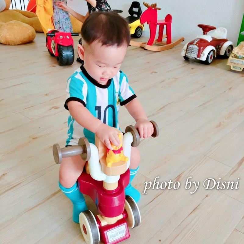 豆豆第一次玩到這種車子,結果竟然用站的,到底誰教的啊?哈哈~